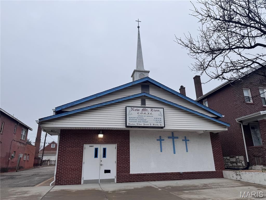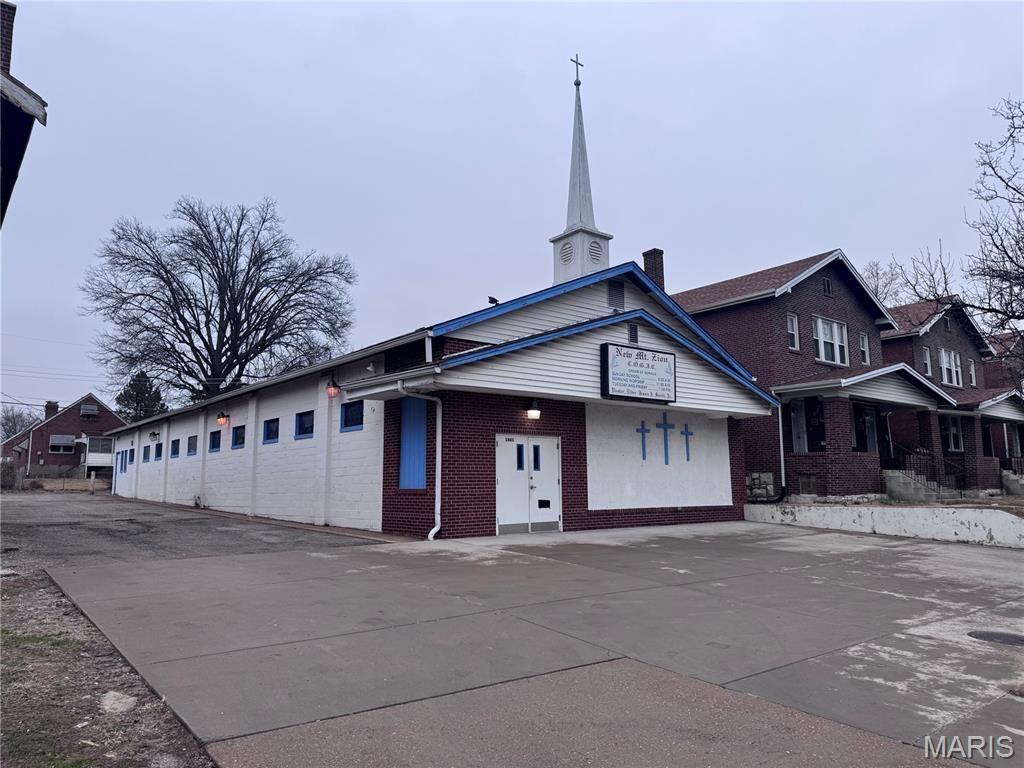 Attention Pastors or Commercial Businesses- You Are Home! Beautiful church located in a wonderful residential neighborhood, seating 150+ congregants. This well-maintained property offers a spacious sanctuary, adequate and comfortable men's and women's restrooms, and a fellowship hall with a kitchen that includes a sink, refrigerator, stove, and microwave, all of which remain with the property. Additional features include a sound/media room, pastor's study, and an upstairs loft ideal for youth ministry. The parking lot accommodates approximately 20 vehicles, with additional off-street parking available. Recent updates include a New Electric Panel/Distribution Board, July 2025 , new concrete poured in the parking lot in 2019, a new roof including decking in 2018, and a new heating and cooling system installed in October 2021. Organ and piano may be negotiated with the sale. This church has been very well maintained and is truly move-in ready-run, don't walk, this opportunity will not last!