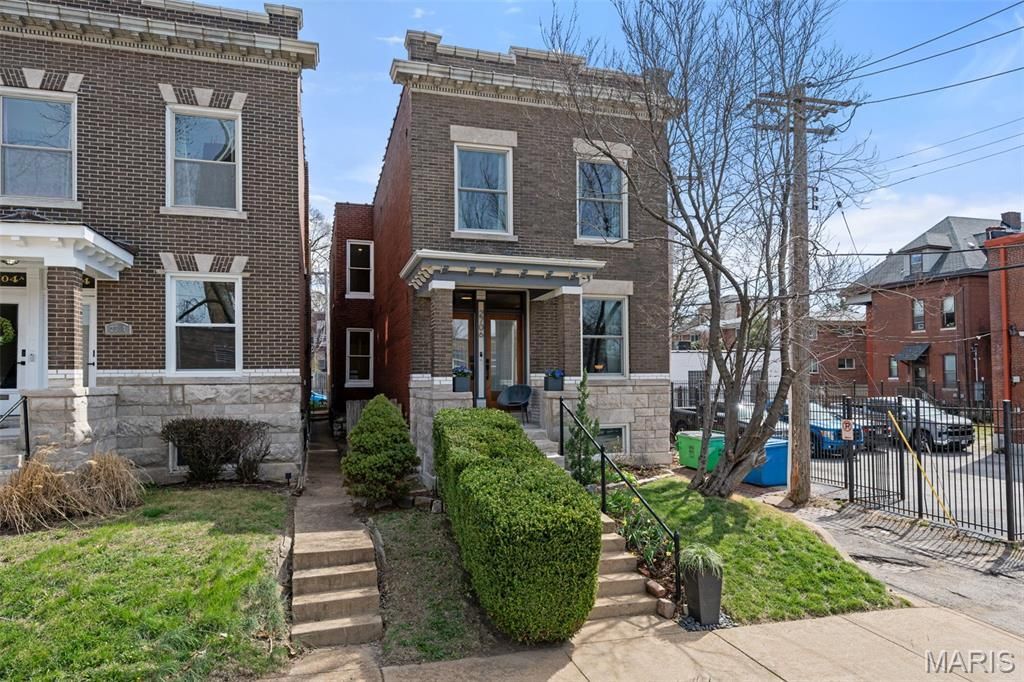 Open House 3/29 1-3pm. An incredible, top-to-bottom renovation loaded with upgrades, all while preserving the home's timeless character and charm. Right from the curb, the brand-new solid mahogany front doors set the tone (a pretty great first impression), complemented by new Anderson windows along the front of the home that bring in natural light with style and efficiency.The main level shines with gorgeous hardwood floors, eye-catching light fixtures, a spacious living room, and separate dining area featuring a coffered ceiling and a built-in bar with wine fridge, perfect for hosting or relaxing at home. The kitchen is a showstopper with its center island breakfast bar, stainless appliances, unique backsplash with pot filler, and honed quartz countertops, all opening to a light-filled adjoining space currently styled as a cozy eat-in area or breakfast nook with a charming coffee station (but easily flexible to fit your lifestyle). A main floor office/den and a generously sized half bath add even more functionality.Upstairs, the primary suite feels like a true escape, a spa-like bathroom featuring a double vanity and an oversized walk-in shower. Tucked within the bedroom is a sun-drenched bonus nook-perfect for a vanity, dressing area, or a cozy coffee corner, adding an unexpected touch of everyday luxury. This level also includes convenient second-floor laundry, two additional bedrooms, another full bath, and a versatile landing area.Out back, enjoy a fantastic deck just off the kitchen overlooking a beautifully landscaped yard with lush green grass, elegant wisteria vines, and a variety of blooming plants that create a peaceful, garden-like setting. The fenced yard, 2 car garage port, and full walk-out basement with an additional laundry hookup round out the home's impressive list of features.Located just steps from Tower Grove Park and surrounded by popular restaurants and shops, this solid, historic home has been thoughtfully updated and tastefully designed throughout. It's move-in perfect, with just the right amount of 'wow to make you fall in love.