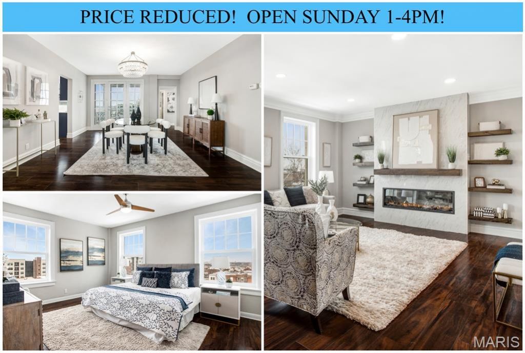 OPEN SUNDAY, MARCH 29th 1-4pm! PRICE REDUCED! This one goes above & beyond! Absolutely stunning, over the top renovation to this picturesque condo in the perfect location. Classic 1920's building with wonderful historic features, yet with all the updates & conveniences you could hope for in this modern interior. Gorgeous updated flooring throughout, super light-filled rooms & a fantastic flexible floor plan. Beautiful black & white marble foyer, spacious living room with custom bookshelves, modern electric fireplace with floor to ceiling surround, huge dining room - perfect for entertaining, updated kitchen with custom cabinets, spice drawer, induction range, quartz counters & backsplash, etc. This formerly 3 bedroom unit is currently designed as a fabulous primary suite with wonderful updated bath, heated floors, walk-in custom shower & an amazing dressing room beyond compare, plus a separate guest suite with another full bath, private in-unit laundry, fabulous private patio ideal for coffee or cocktails, 1 attached garage parking plus 1 additional gated parking space. Large extra storage in lower level plus a community gym, original marble entry & cool elevator to your top floor private retreat. Fantastic location just steps from Forest Park, plus enjoy the benefits of BJC/Wash U's Live Near Your Work program, if eligible. Condos this amazing don't come often!
