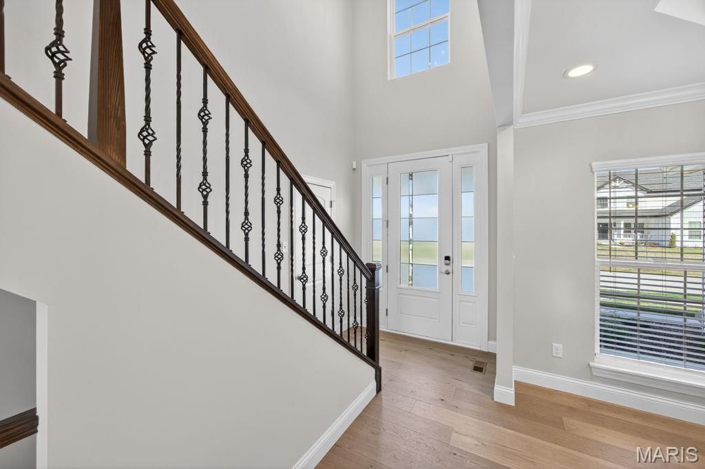 Why wait to build when you can step into a nearly new, designer-finished home that already surpasses new construction? This exceptional 11-month-old story-and-a-half residence in one of Chesterfield's most desirable locations offers the perfect blend of sophistication, comfort, andturnkey convenience-with premium upgrades already complete.From the moment you enter, you're welcomed by elevated finishes, an upgraded designer lighting package, and luxury flooring that flows seamlessly throughout. The gourmet kitchen is a true showpiece, thoughtfully designed for both everyday living and effortless entertaining, anchored byhigh-end finishes and an open, inviting layout.This expansive home offers five bedrooms and 4.5 baths, including a beautifully finished walkout lower level featuring a spacious living area, private bedroom, and full bath-ideal for guests, multigenerational living, or a refined retreat. Upstairs, a generous loft provides additional livingspace alongside three well-appointed bedrooms, creating the perfect balance of function and flexibility.Set on a premium half-acre walkout lot off sought-after Wild Horse Creek Road, the outdoor living experience is just as impressive. A brand new $40,000 composite deck is being added, creating theultimate setting for elevated outdoor entertaining or quiet evenings overlooking your private surroundings. With window treatments already installed, every detail has been thoughtfully completed-offering a truly move-in-ready luxury experience.This is more than a home-it's a lifestyle. Skip the wait, avoid the added expense, and step into a residence where every detail has already been curated for modern luxury living.